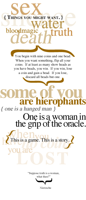 Some of you are hierophants. One is a hanged man. One is a woman in the grip of the oracle.